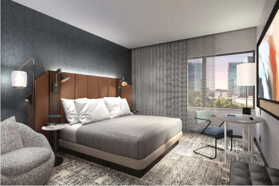 Mobiliário de quarto de hotel cabeceira com mesas de noite no projeto do hotel Hilton Garden